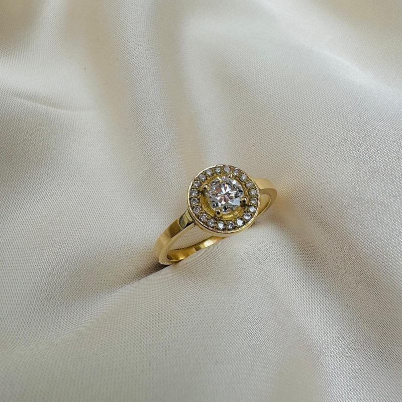 Ring gemaakt in 18kt geel goud gezet met witte labo diamanten.
