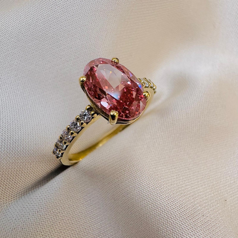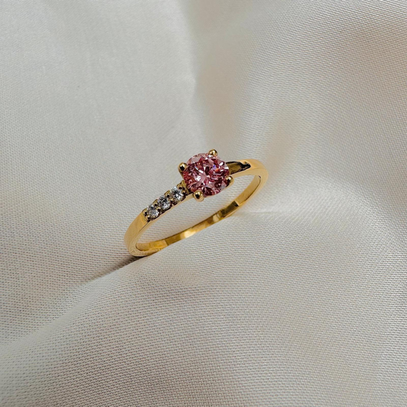 Verlovingsring 18kt geel goud + roze labo diamant + witte labo diamant